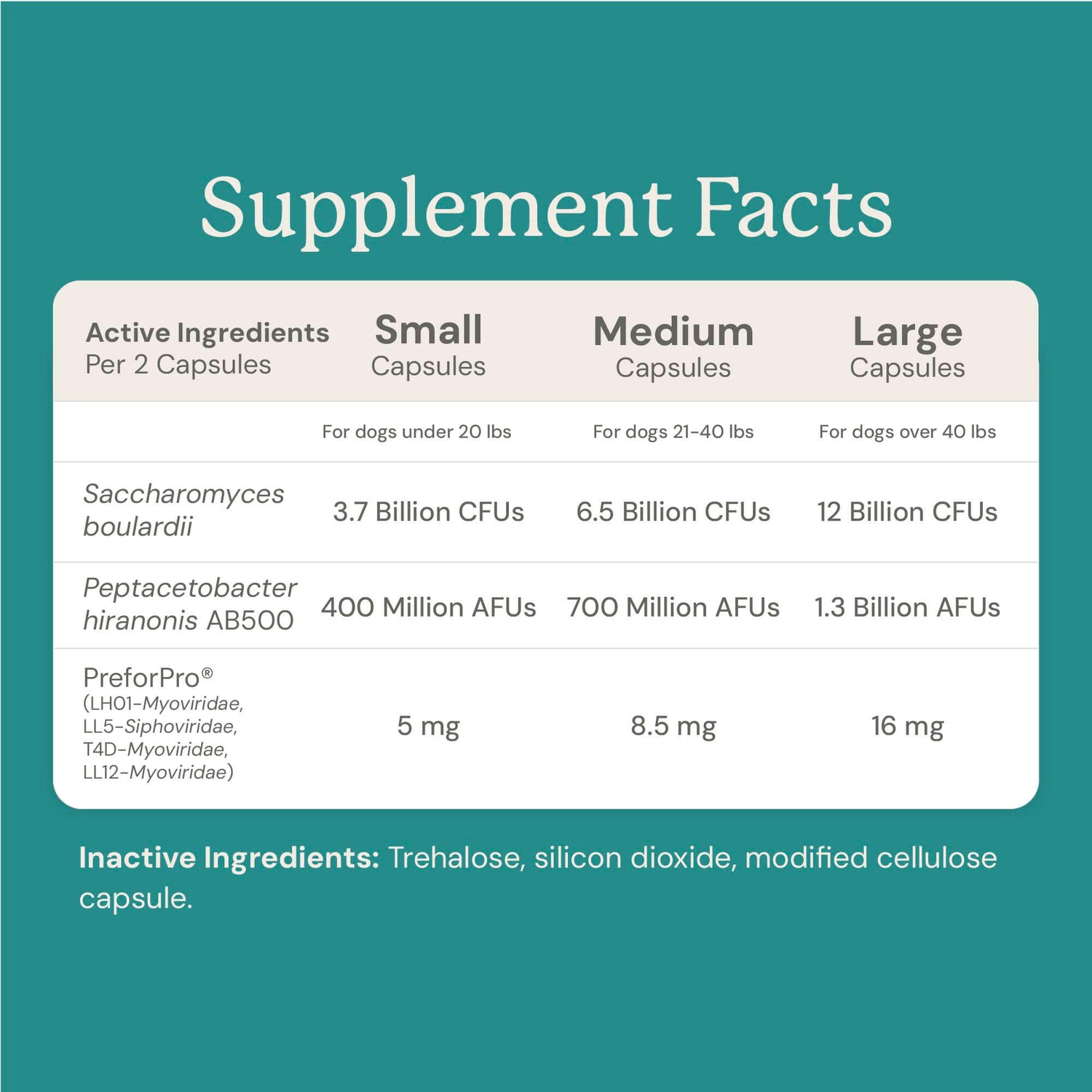 - 41 - 60 lbs = 2 Large capsules per day